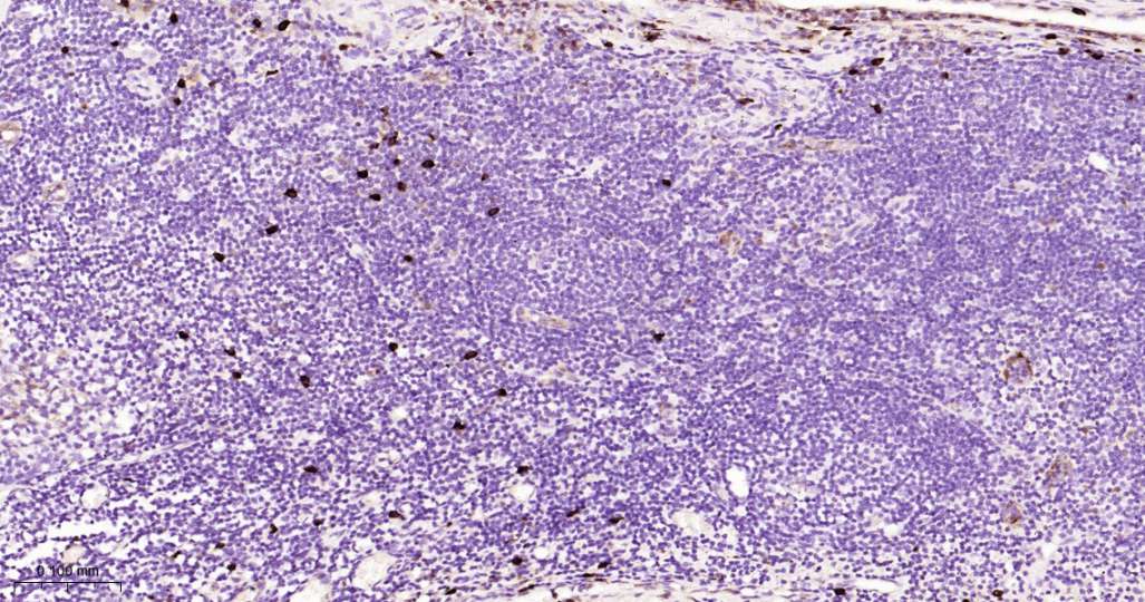 Immunohistochemical analysis of paraffin embedded Human spleen tissue slide using IHC0607H (Human CD63 Kit).