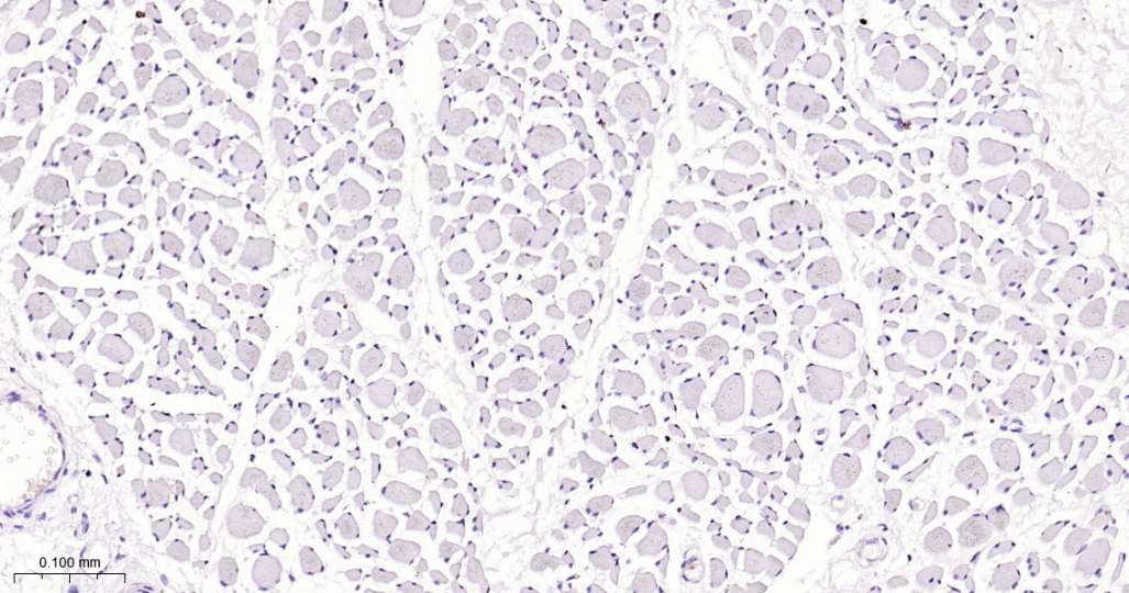 Immunohistochemical analysis of paraffin embedded Human skeletal muscle tissue slide using IHC0607H (Human CD63 Kit).
