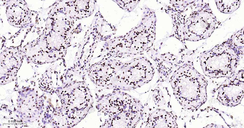 Immunohistochemical analysis of paraffin embedded Human testis tissue slide using IHC0615 (ILF3 Kit).