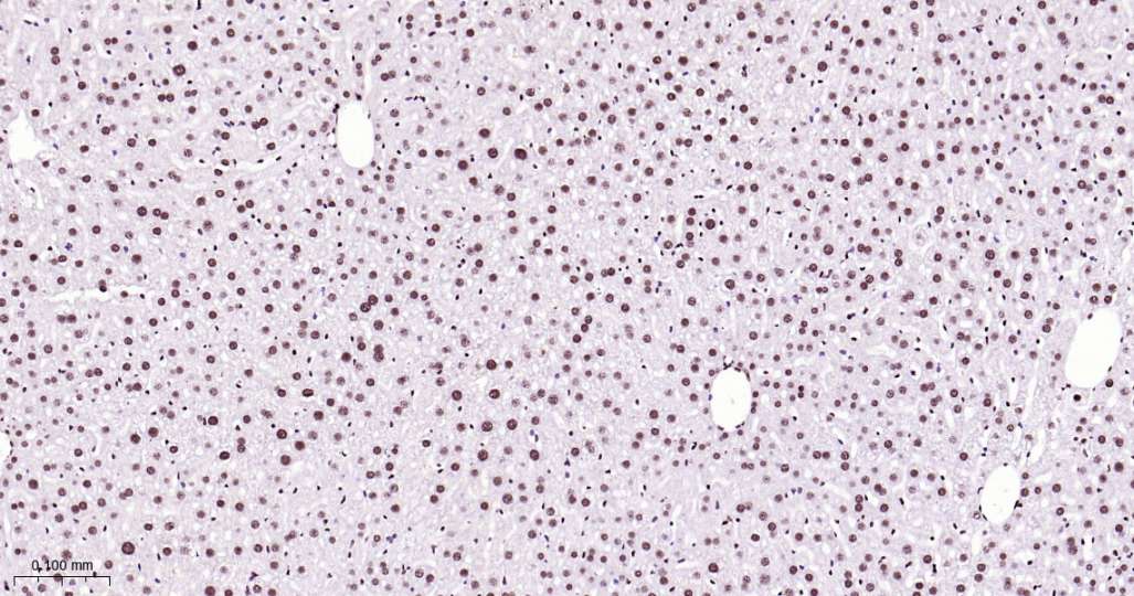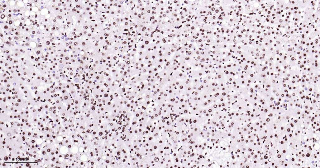 Immunohistochemical analysis of paraffin embedded Mouse liver tissue slide using IHC0615 (ILF3 Kit).