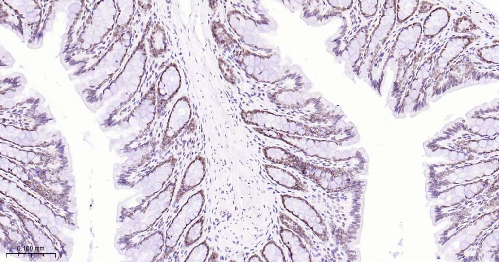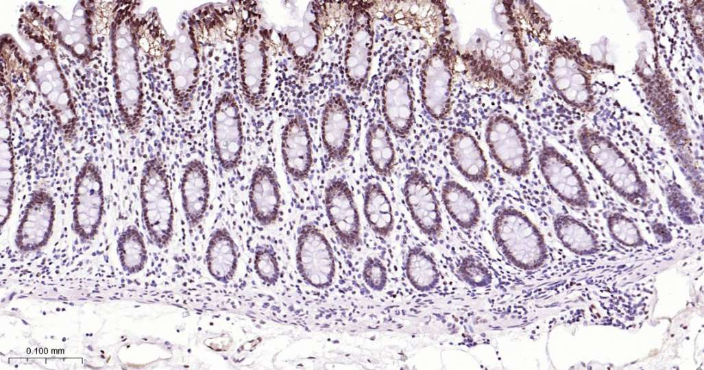Immunohistochemical analysis of paraffin embedded Mouse colon tissue slide using IHC0620 (Topoisomerase I Kit).