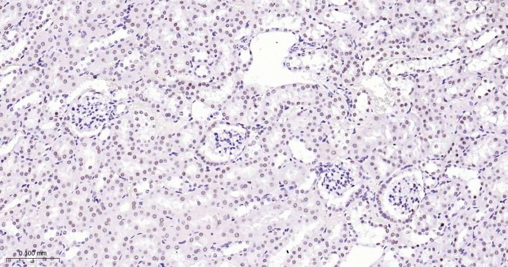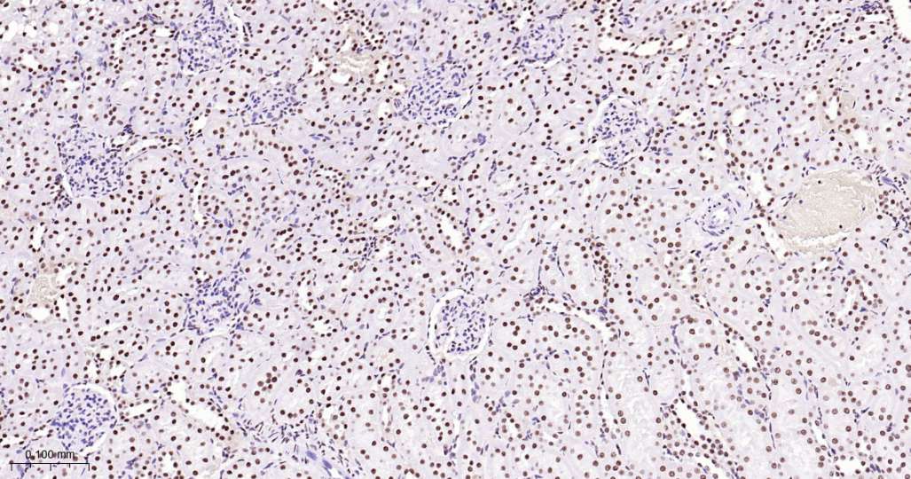 Immunohistochemical analysis of paraffin embedded Rat kidney tissue slide using IHC0620 (Topoisomerase I Kit).