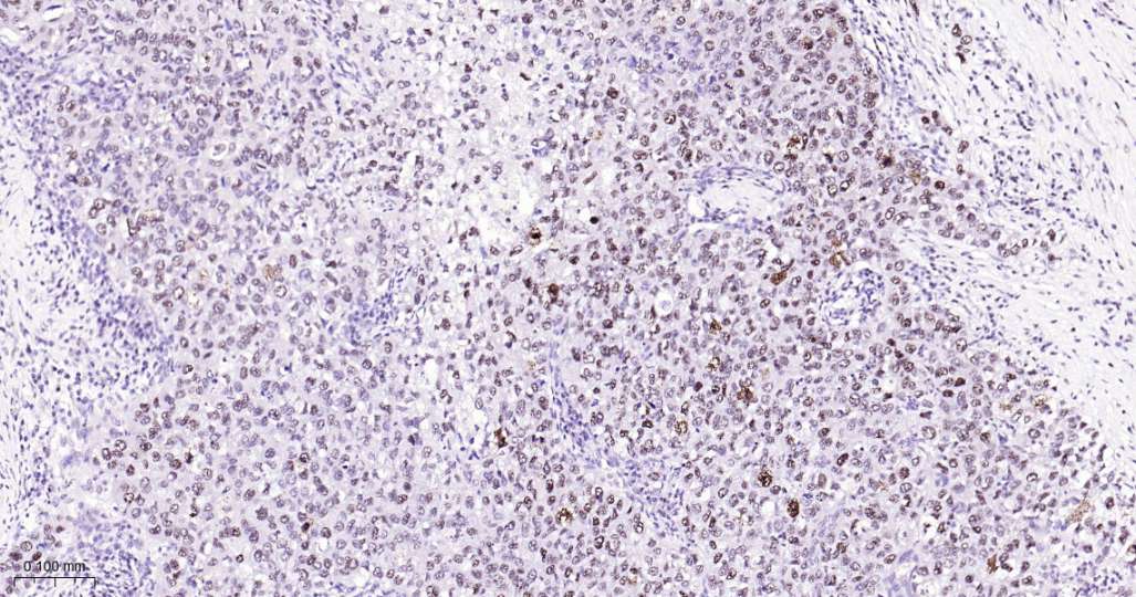 Immunohistochemical analysis of paraffin embedded Human breast cancer tissue slide using IHC0622H (Human phospho-P38 MAPK (T180) Kit).