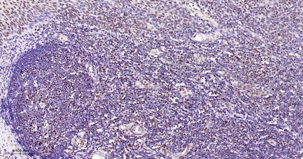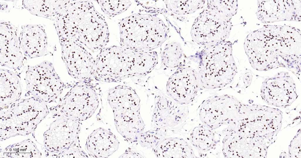 Immunohistochemical analysis of paraffin embedded Human testis tissue slide using IHC0626H (Human Phospho-POLR2A (Ser5) Kit).