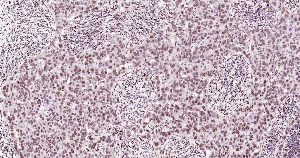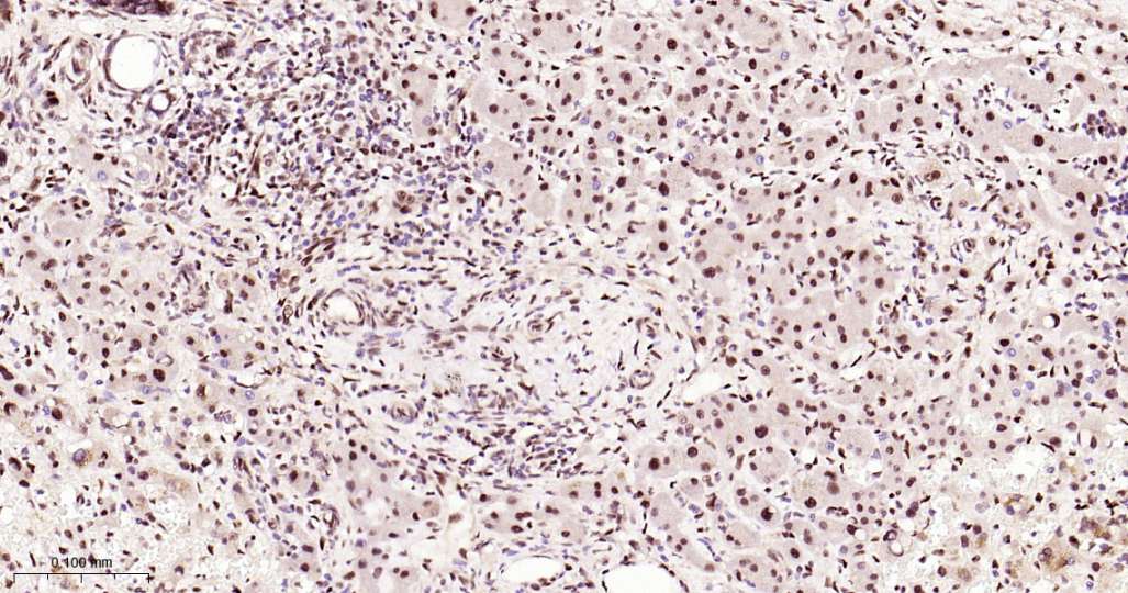 Immunohistochemical analysis of paraffin embedded Human hepatocellular carcinoma tissue slide using IHC0628H (Human FTO Kit).