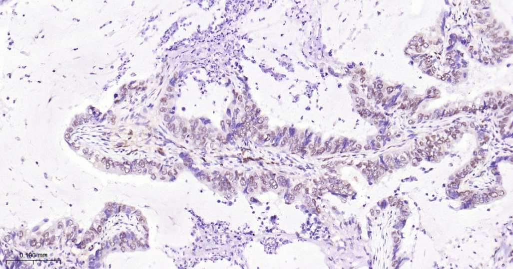 Immunohistochemical analysis of paraffin embedded Human breast cancer tissue slide using IHC0628H (Human FTO Kit).