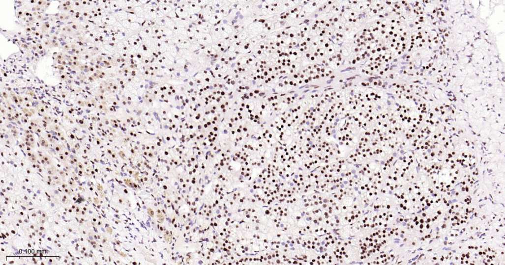 Immunohistochemical analysis of paraffin embedded Human adrenal gland tissue slide using IHC0628H (Human FTO Kit).