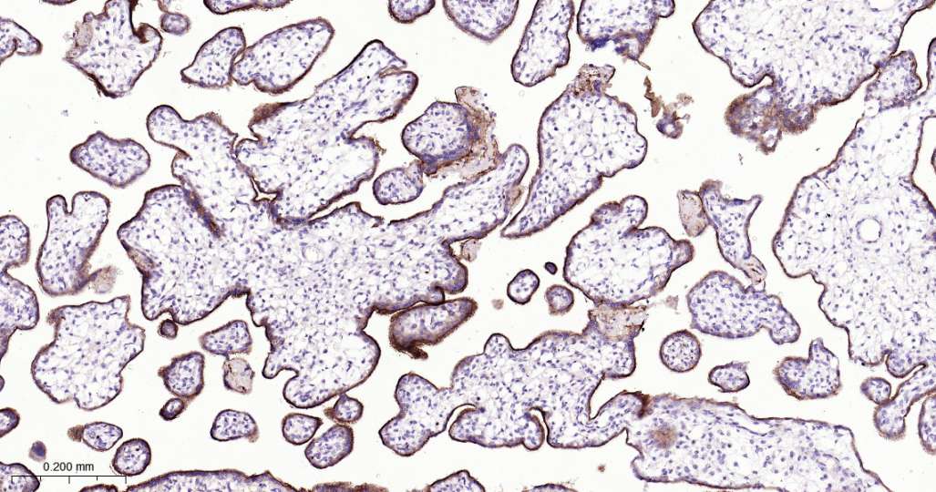 Immunohistochemical analysis of paraffin embedded Human placenta tissue slide using IHC0629H (Human TFRC Kit).