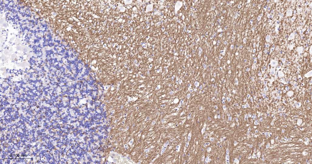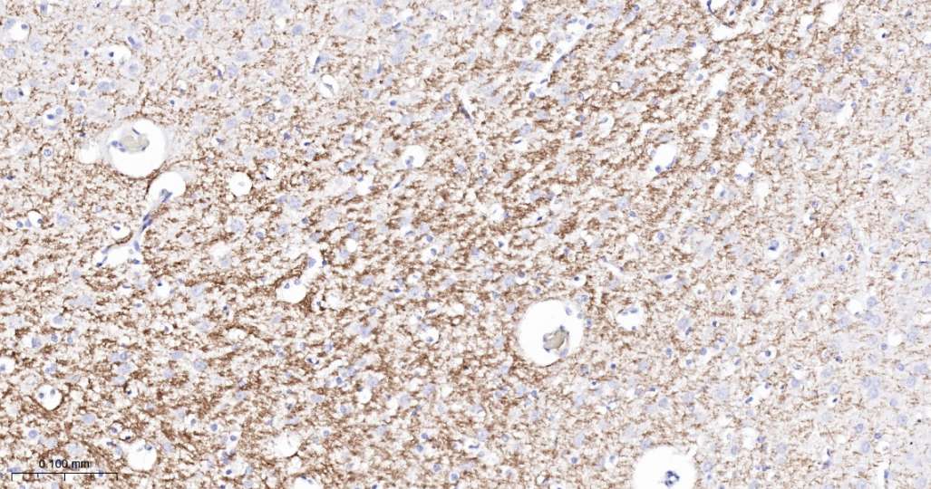 Immunohistochemical analysis of paraffin embedded Mouse brain tissue slide using IHC0630 (MOG IHC Kit).