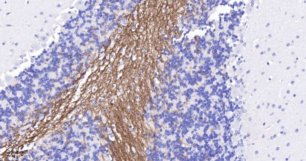 Immunohistochemical analysis of paraffin embedded Mouse cerebellum tissue slide using IHC0630M (Mouse MOG IHC Kit).