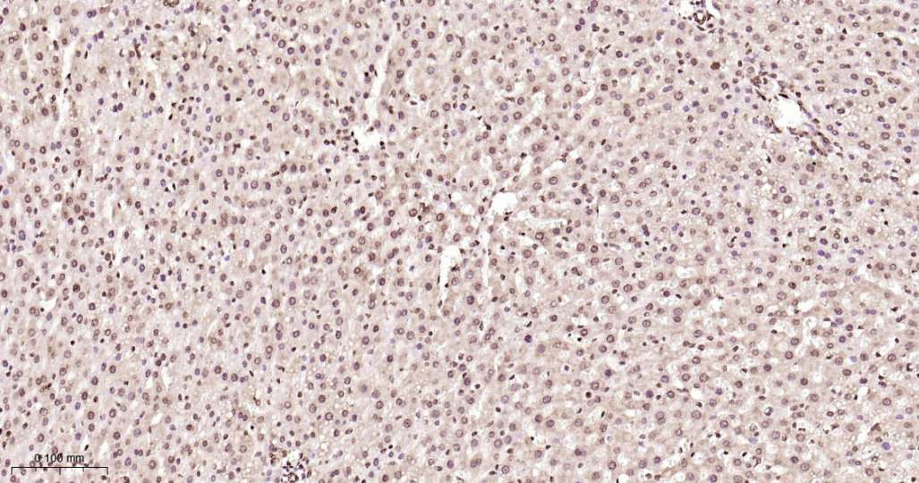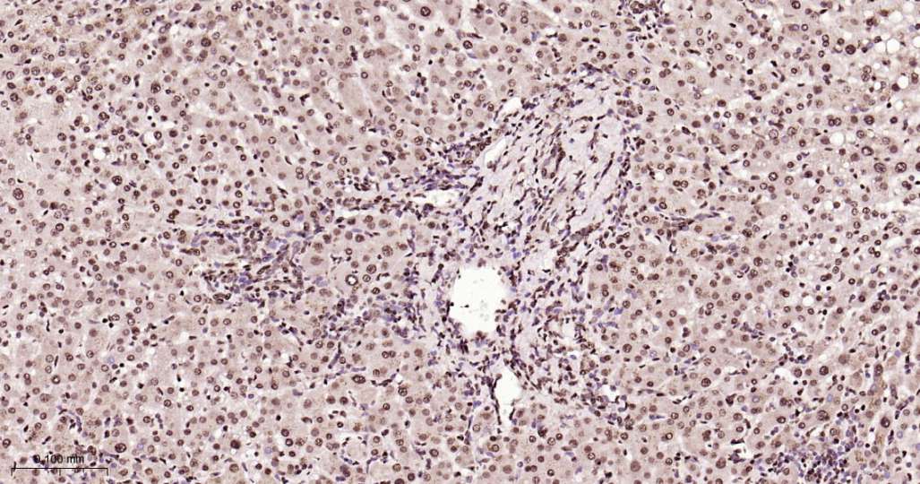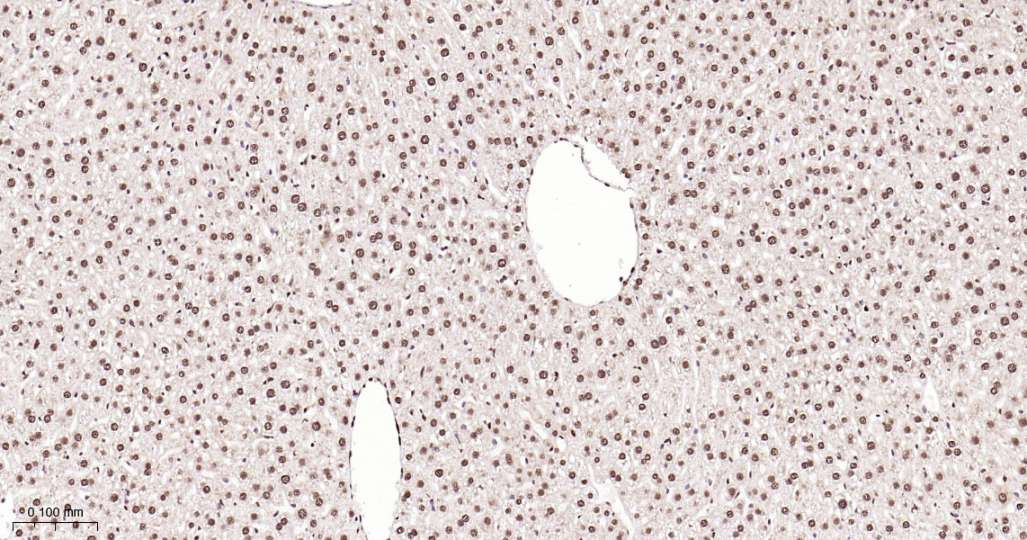 Immunohistochemical analysis of paraffin embedded Rat liver tissue slide using IHC0635 (ALYREF Kit).