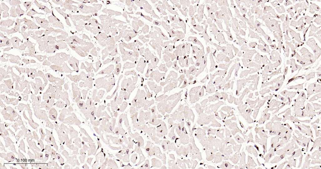 Immunohistochemical analysis of paraffin embedded Human heart tissue slide using IHC0635H (Human ALYREF Kit).