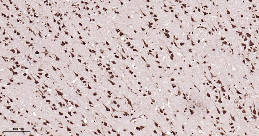 Immunohistochemical analysis of paraffin embedded Human brain tissue slide using IHC0635H (Human ALYREF Kit).