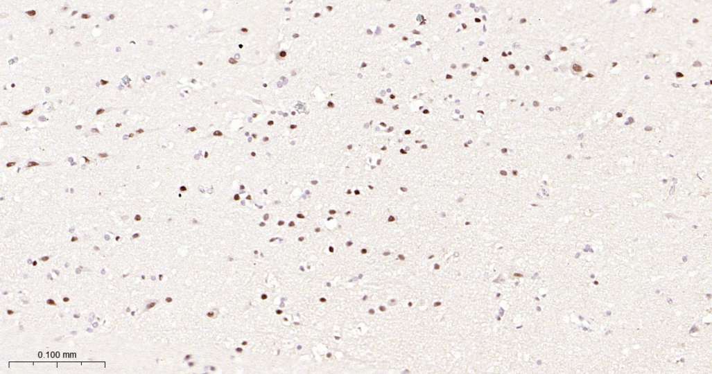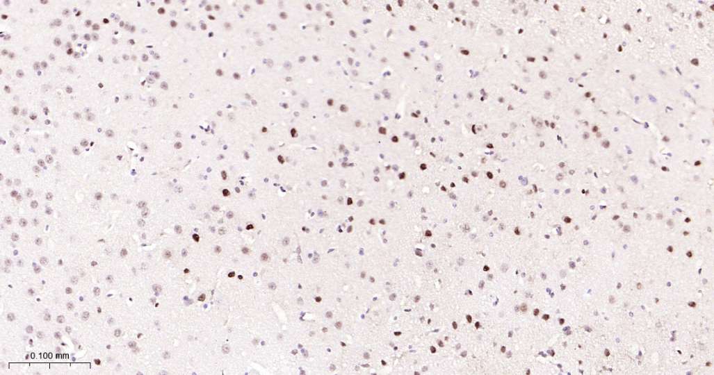 Immunohistochemical analysis of paraffin embedded Rat brain tissue slide using IHC0638 (SF3B1 Kit).