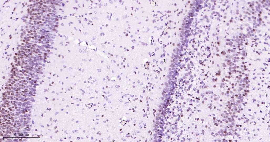 Immunohistochemical analysis of paraffin embedded Mouse brain tissue slide using IHC0638 (SF3B1 Kit).