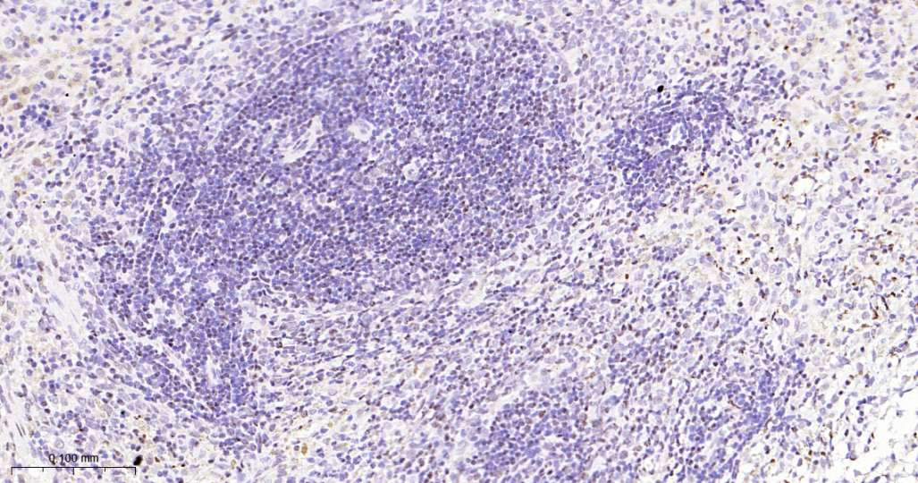 Immunohistochemical analysis of paraffin embedded Rat spleen tissue slide using IHC0638R (Rat SF3B1 Kit).