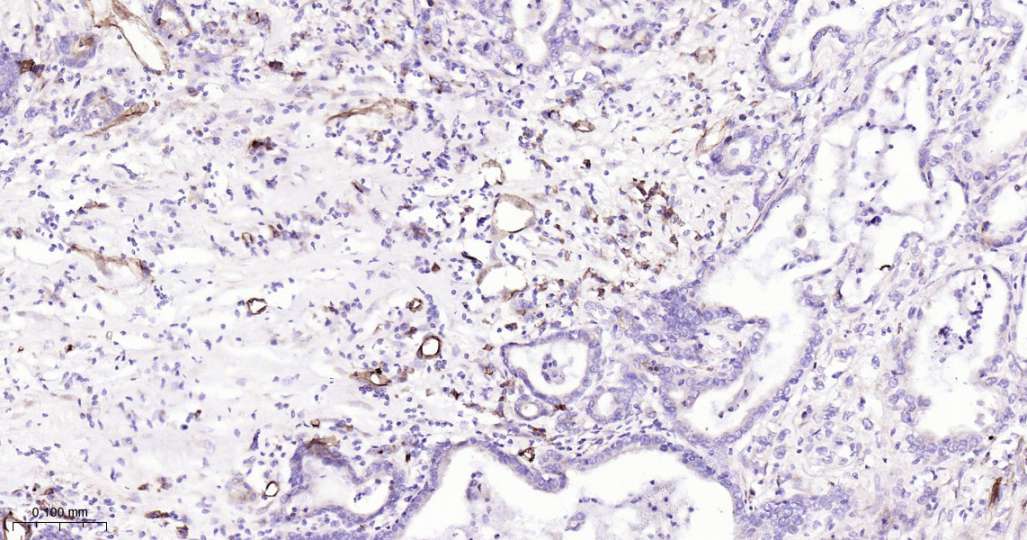 Immunohistochemical analysis of paraffin embedded Human pancreatic cancer tissue slide using IHC0639H (Human PODXL Kit).
