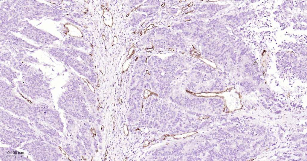 Immunohistochemical analysis of paraffin embedded Human glioma tissue slide using IHC0639H (Human PODXL Kit).