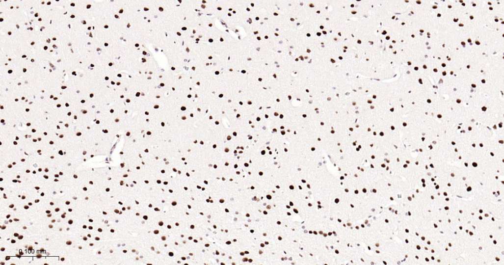 Immunohistochemical analysis of paraffin embedded Mouse brain tissue slide using IHC0642M (Mouse p53BP1 Kit).