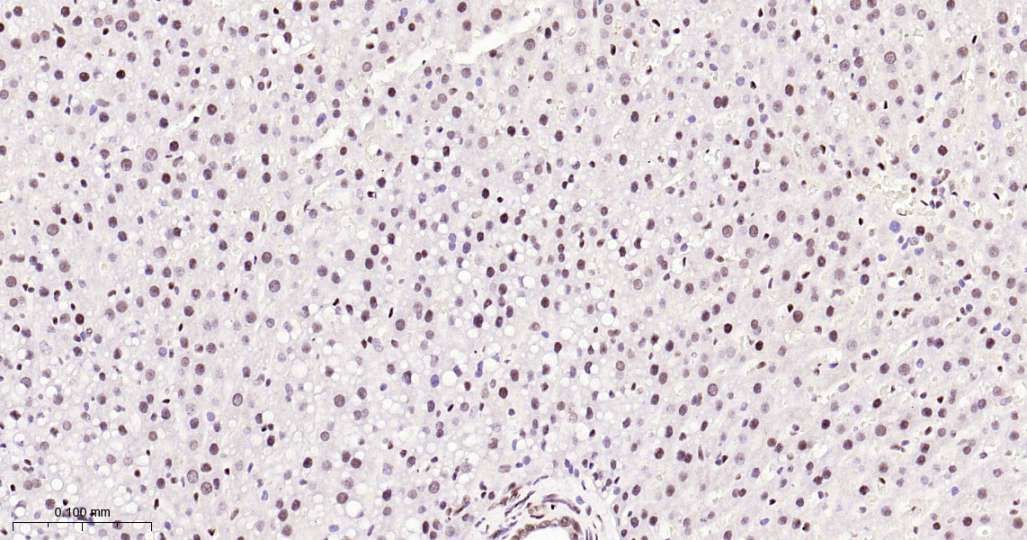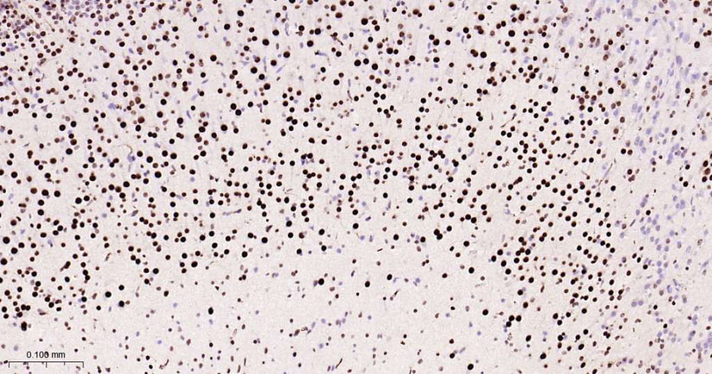 Immunohistochemical analysis of paraffin embedded Rat brain tissue slide using IHC0642R (Rat p53BP1 Kit).