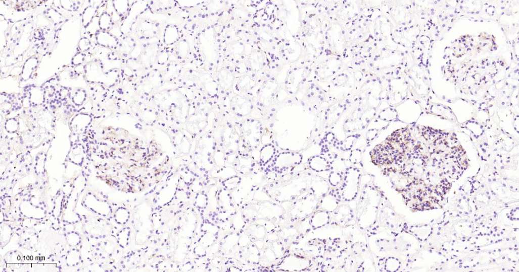 Immunohistochemical analysis of paraffin embedded Human kidney tissue slide using IHC0643H (Human Integrin alpha 5 Kit).