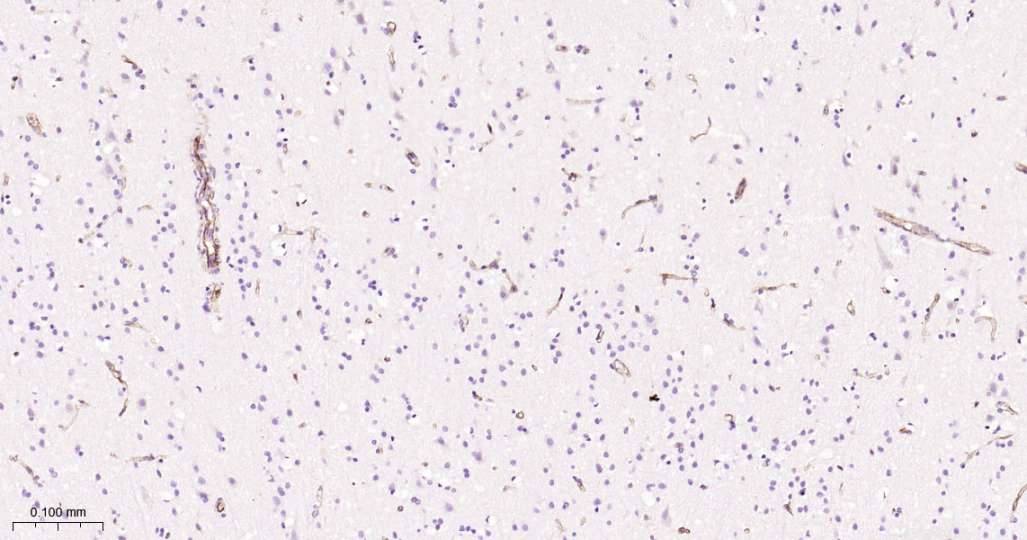 Immunohistochemical analysis of paraffin embedded Human brain tissue slide using IHC0643H (Human Integrin alpha 5 Kit).