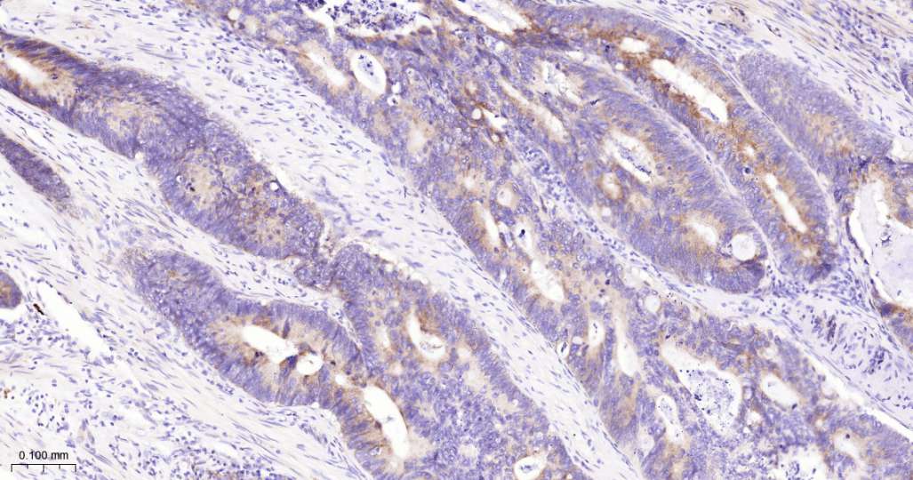 Immunohistochemical analysis of paraffin embedded Human colon cancer tissue slide using IHC0645 (EIF2S1 Kit).