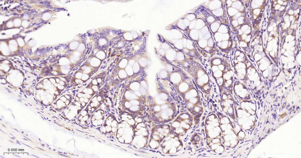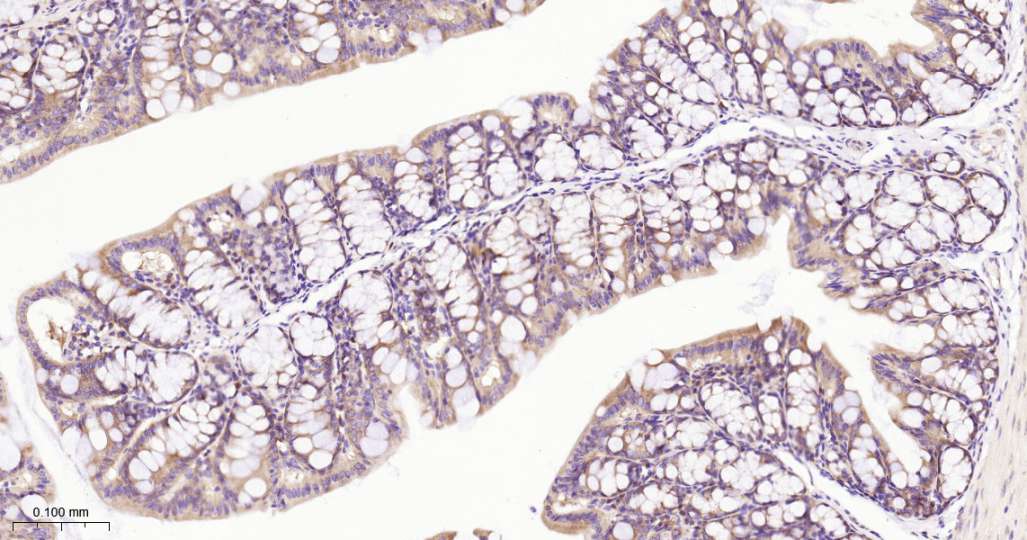 Immunohistochemical analysis of paraffin embedded Mouse colon tissue slide using IHC0645 (EIF2S1 Kit).