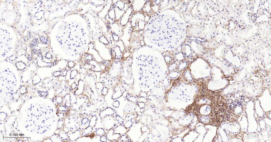 Immunohistochemical analysis of paraffin embedded Human kidney tissue slide using IHC0647H (Human Collagen I Kit).