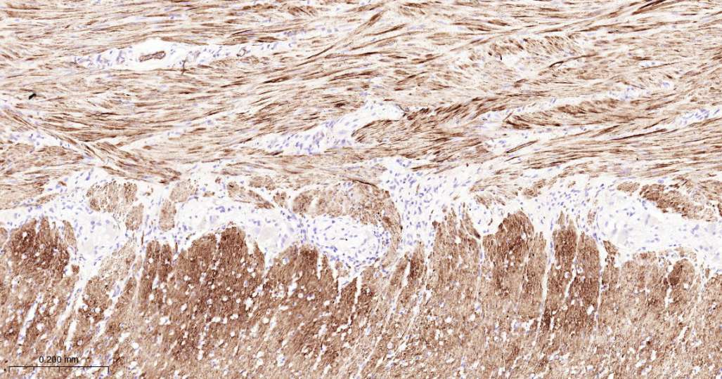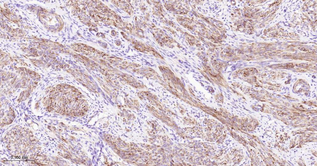 Immunohistochemical analysis of paraffin embedded Human uterus tissue slide using IHC0649H (Human MYL9 Kit).