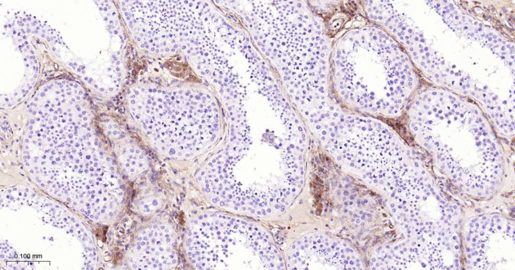 Immunohistochemical analysis of paraffin embedded Human testis tissue slide using IHC0650H (Human MMP1 Kit).