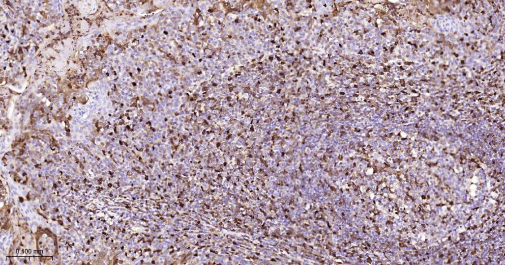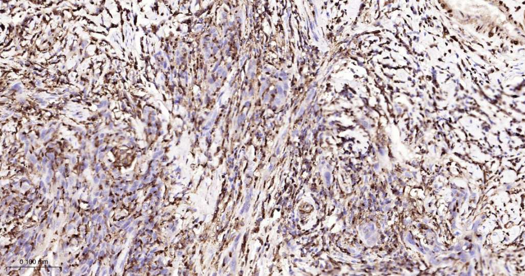 Immunohistochemical analysis of paraffin embedded Human cervical cancer tissue slide using IHC0661H (Human S100A4 Kit).