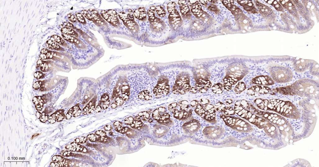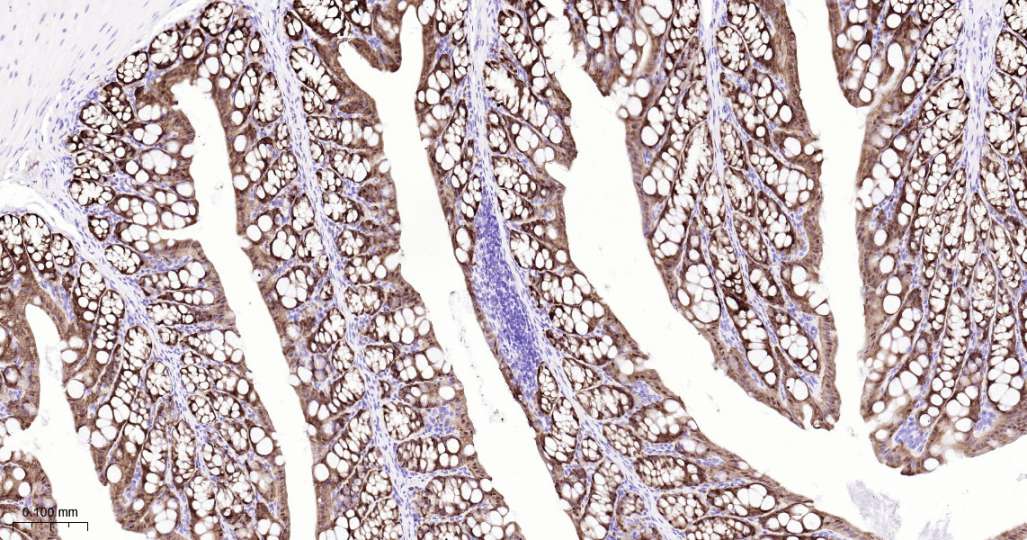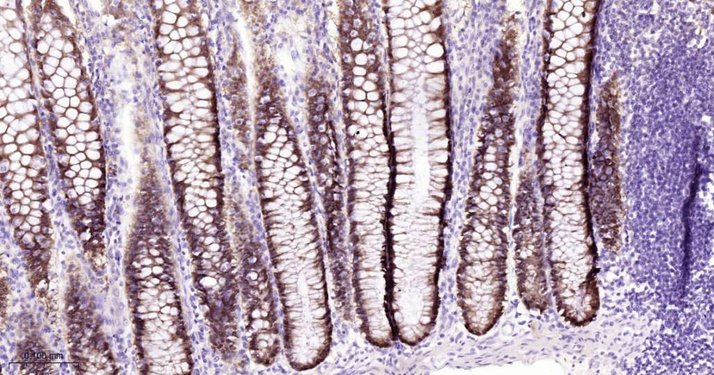 Immunohistochemical analysis of paraffin embedded Mouse colon tissue slide using IHC0670 (DARPP32 Kit).