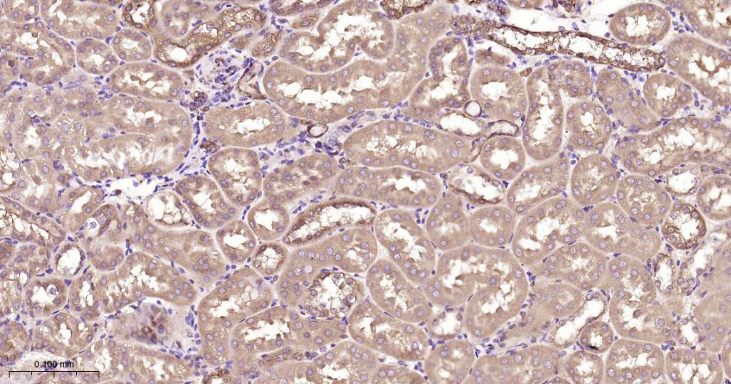 Immunohistochemical analysis of paraffin embedded Mouse kidney tissue slide using IHC0674M (Mouse 14-3-3 alpha/beta/zeta/delta Kit).