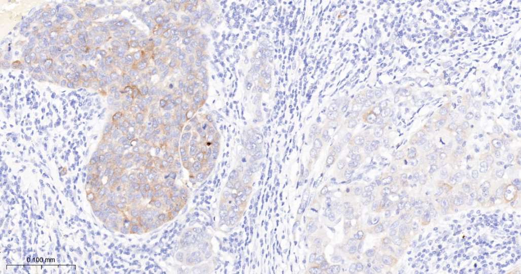 Immunohistochemical analysis of paraffin embedded Human breast cancer tissue slide using IHC0679 (RRM1 Kit).