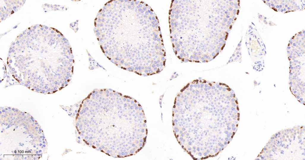 Immunohistochemical analysis of paraffin embedded Mouse testis tissue slide using IHC0679 (RRM1 Kit).