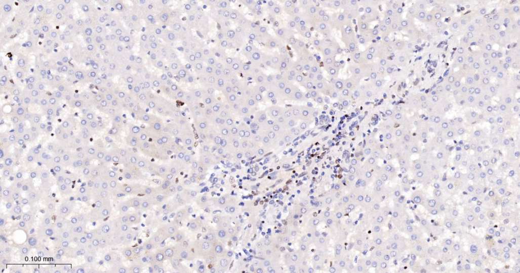 Immunohistochemical analysis of paraffin embedded Human liver tissue slide using IHC0683 (Phospho-Histone H3 (S10) Kit).