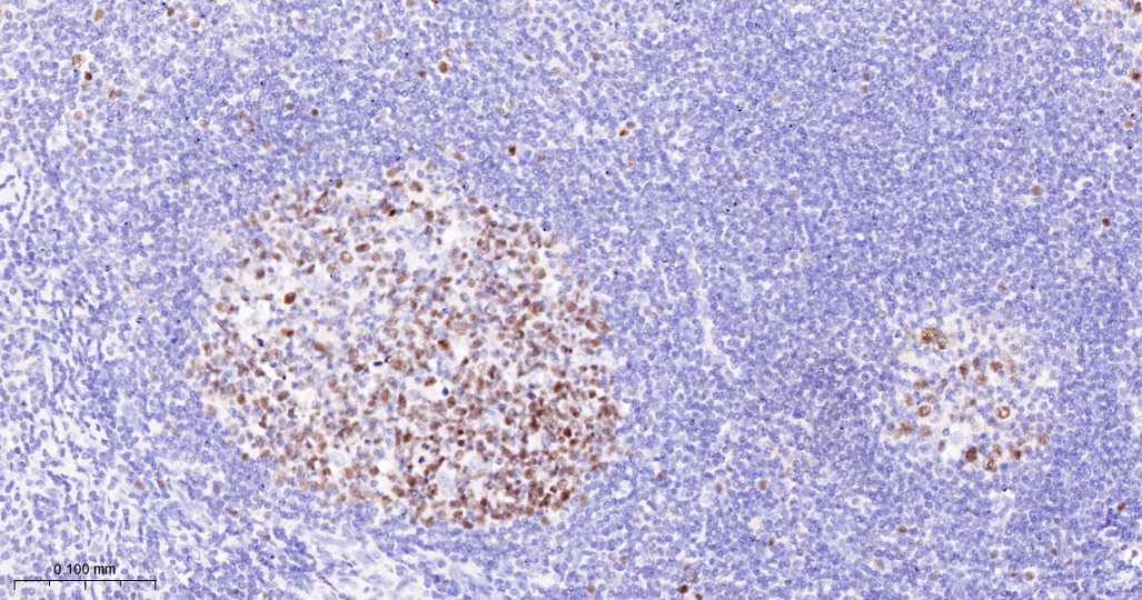 Immunohistochemical analysis of paraffin embedded Human tonsil tissue slide using IHC0689 (MCM3 Kit).