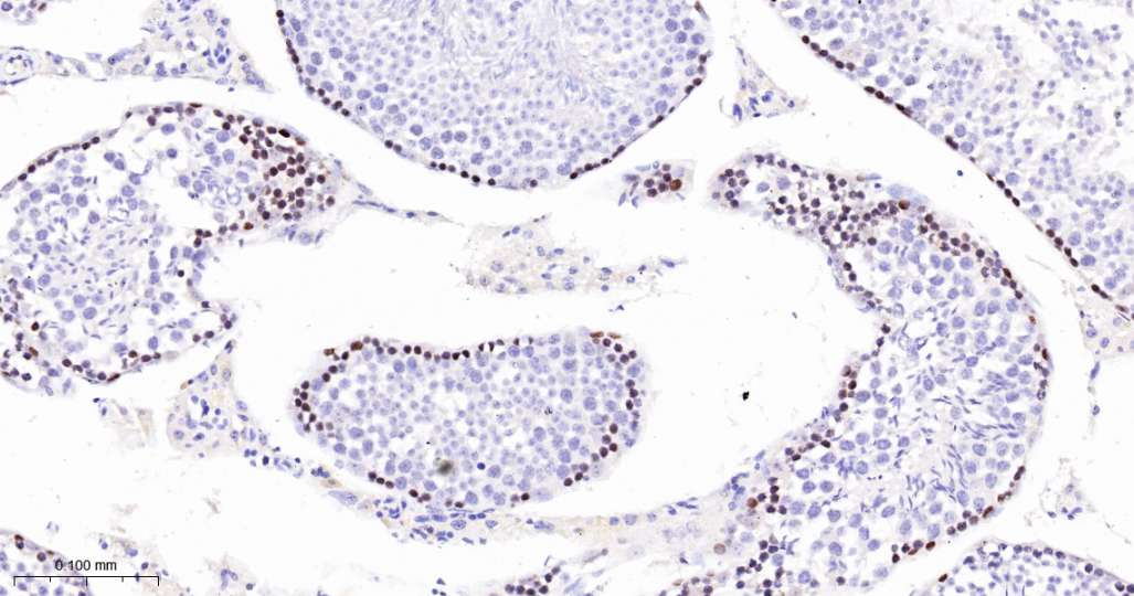 Immunohistochemical analysis of paraffin embedded Mouse testis tissue slide using IHC0689 (MCM3 Kit).