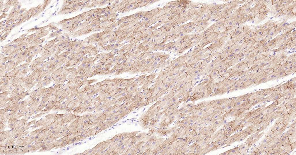 Immunohistochemical analysis of paraffin embedded Mouse skeletal muscle tissue slide using IHC0695 (Dysferlin Kit).