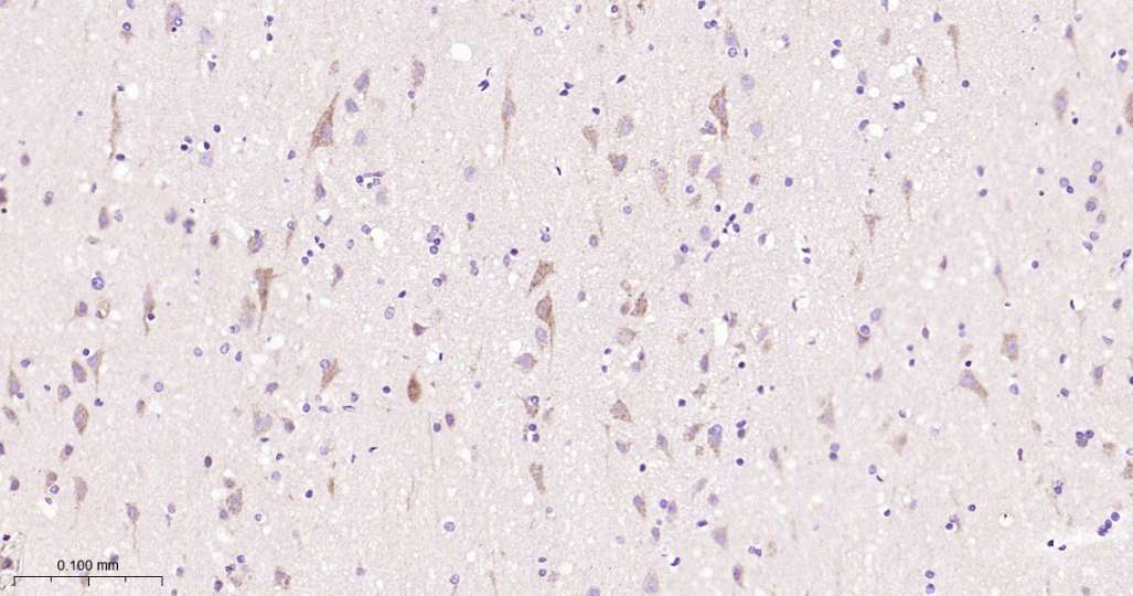 Immunohistochemical analysis of paraffin embedded Human brain tissue slide using IHC0696 (BNIP3 Kit).