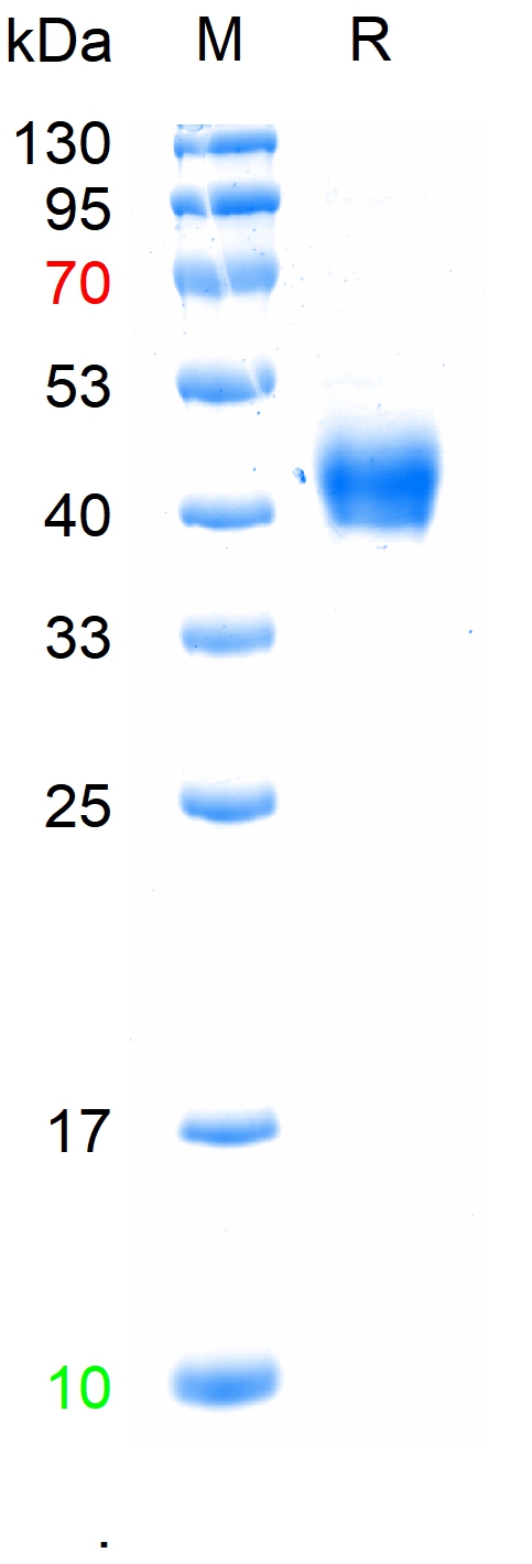 The purity of the protein is greater than 90% as determined by reducing SDS-PAGE.
