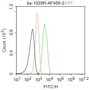 Primary Antibody (green line): Rabbit Anti-Cytokeratin 19 antibody (bs-1028R-BF488)