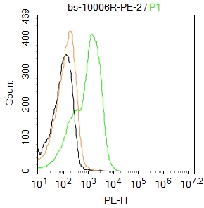 Primary Antibody (green line): Rabbit Anti-CTLA4 antibody (bs-10006R-PE)